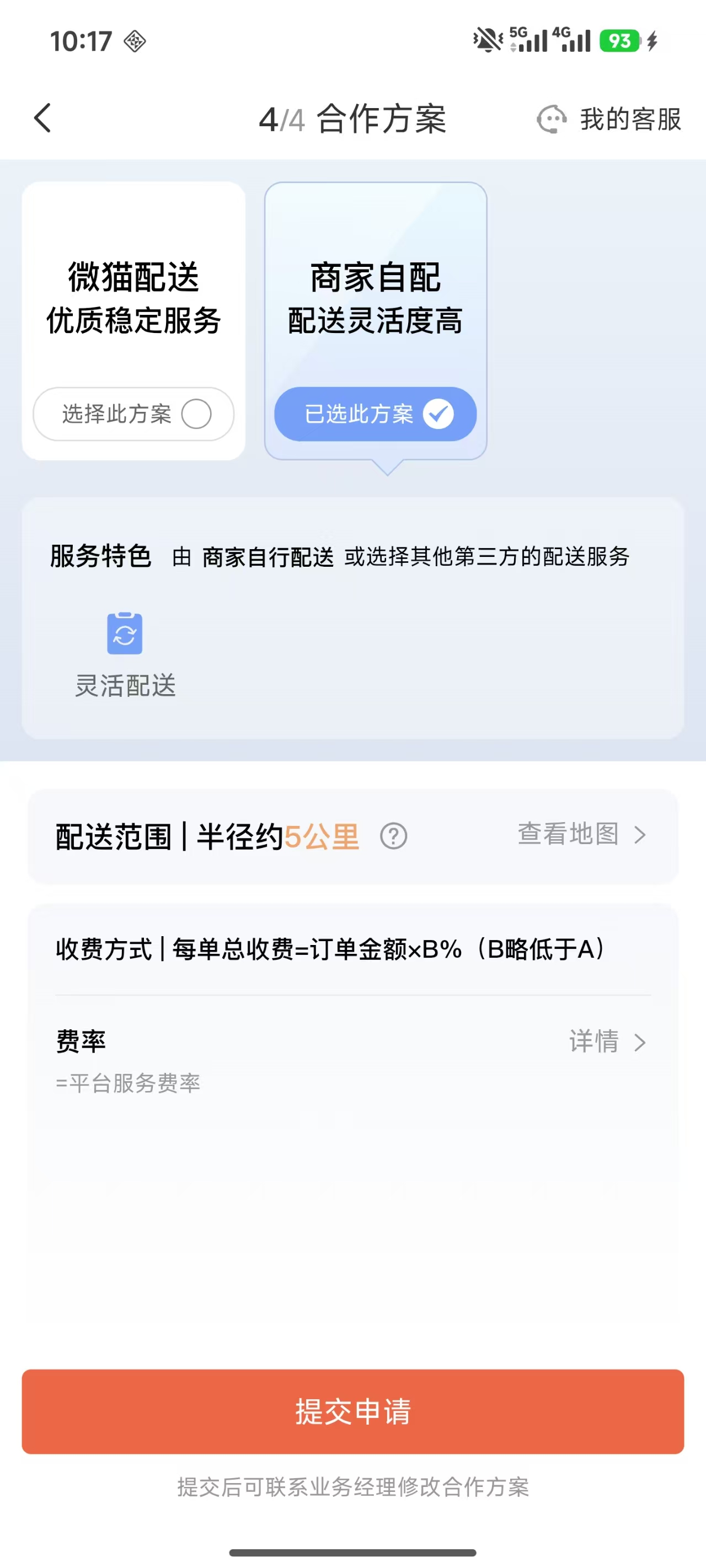 最后一步,商家选择配送合作方式:微猫配送