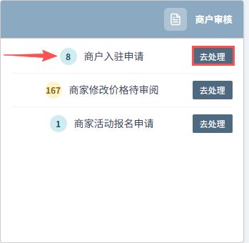 登录管理后台,在左侧菜单中找到 商家管理 → 入驻申请。