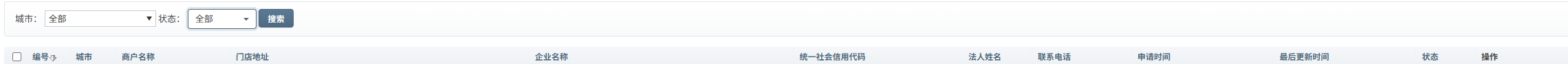 商家通过 APP 提交申请后,运营人员需要在管理后台进行审核。进入审核列表