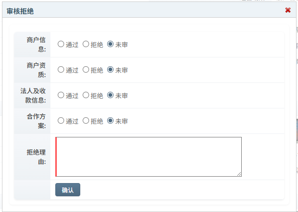 | 审核状态 | 支付渠道侧的审核结果 |