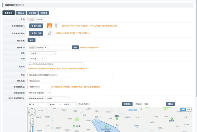 商家入驻完成后,接下来为商家创建和配置店铺的详细参数。