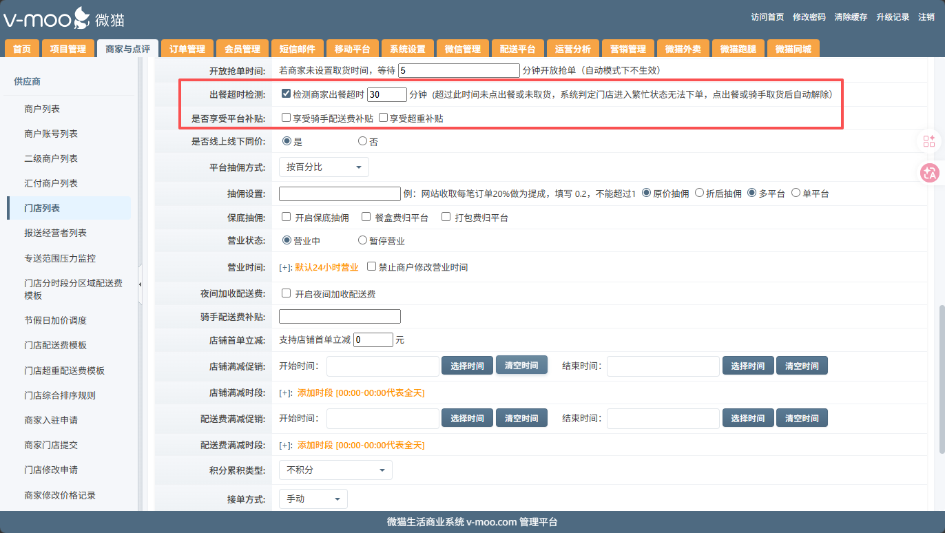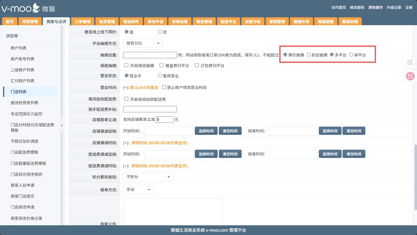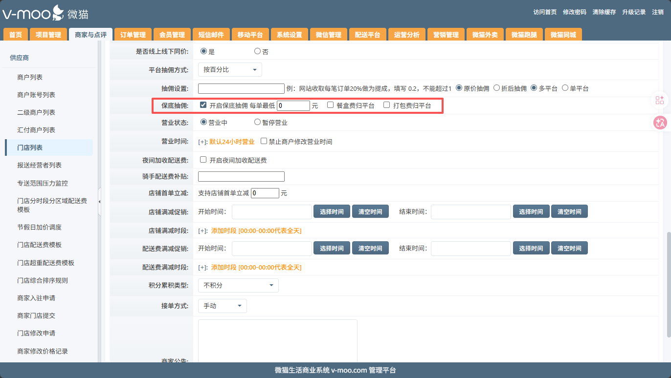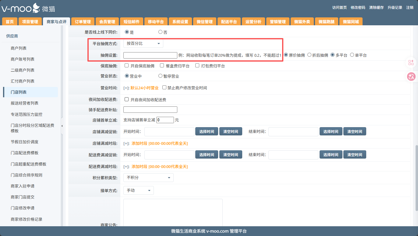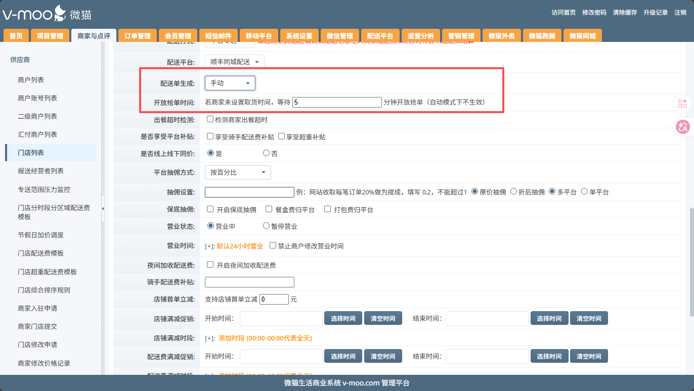 | 外卖管理 | 服务类型、配送、佣金、营业时间 | ⭐⭐⭐ 必配(最核心) |