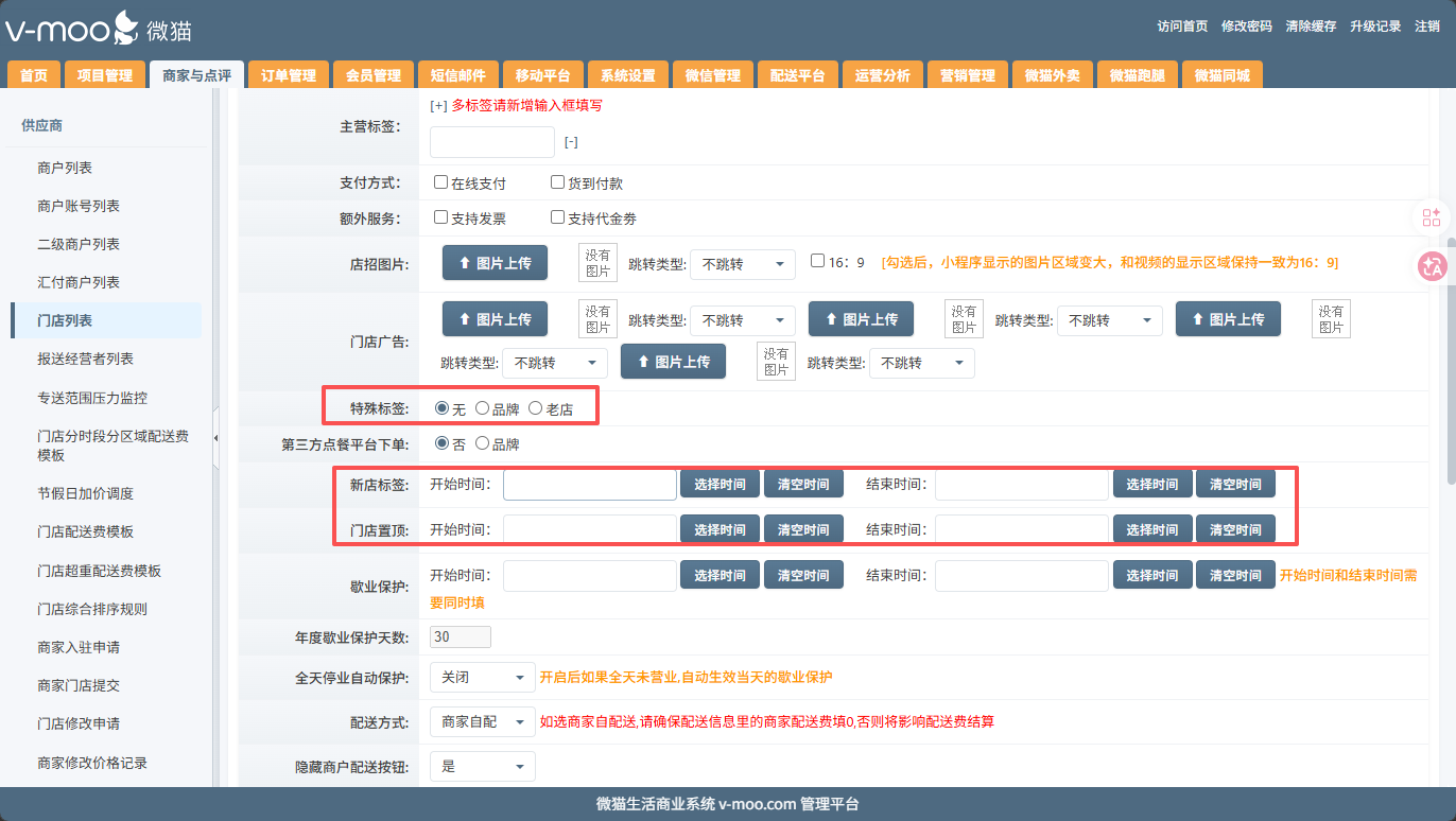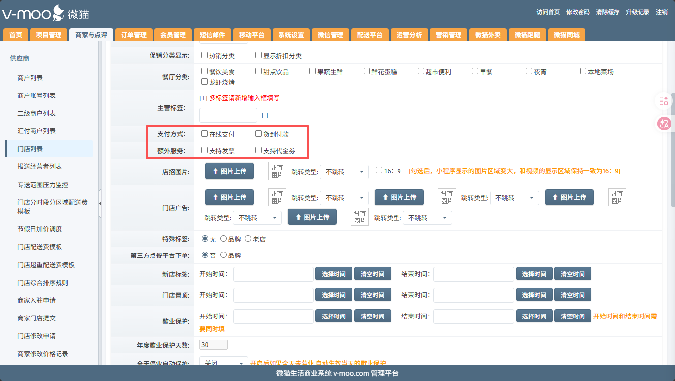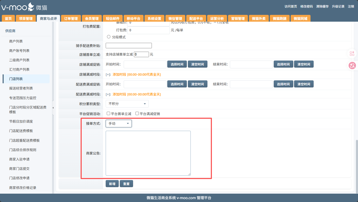 - 门店对外展示的文字信息请使用「外卖管理」选项卡中的 商家公告 字段