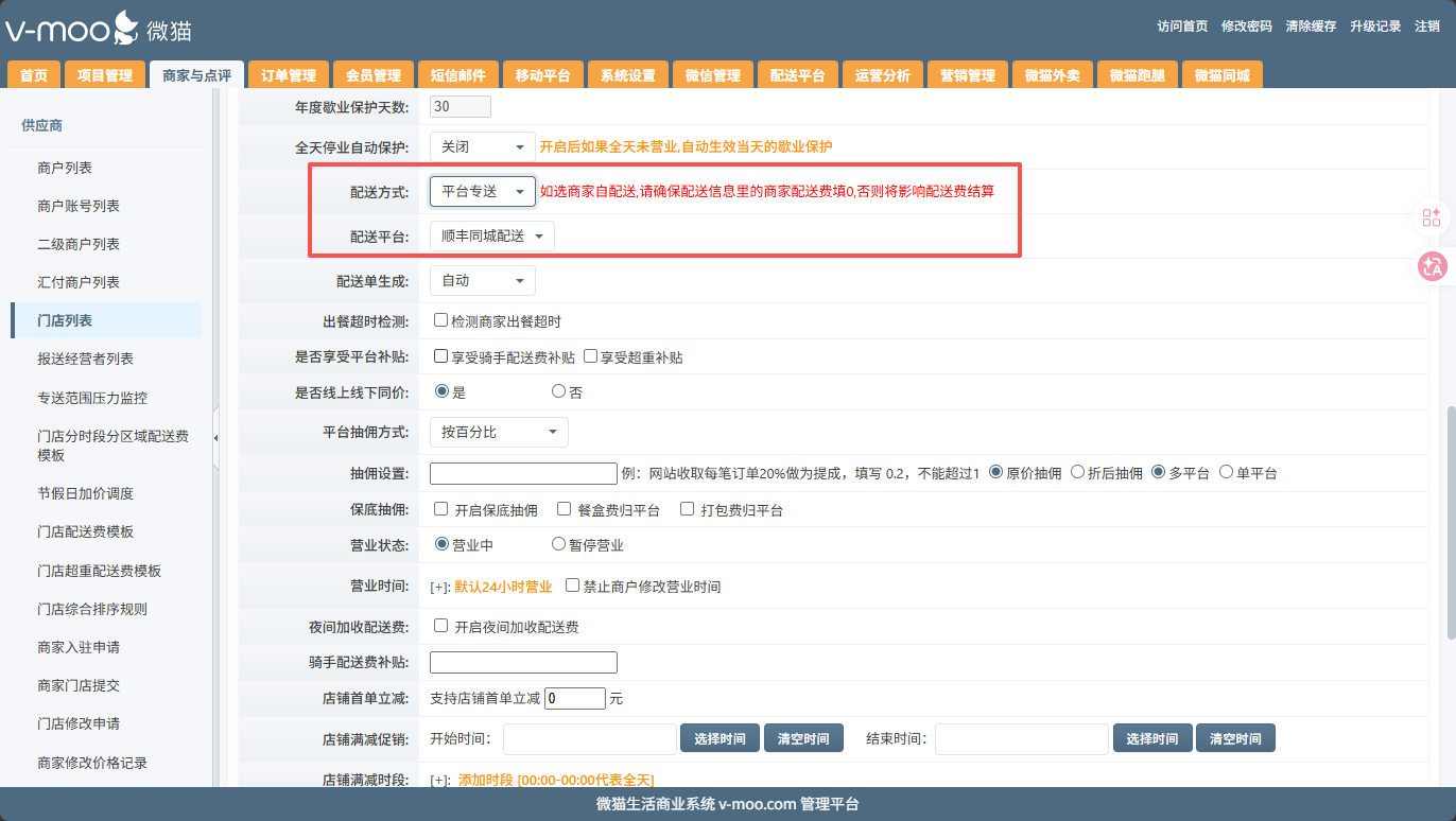 - 配送平台选择正确(微猫配送 / 顺丰同城)