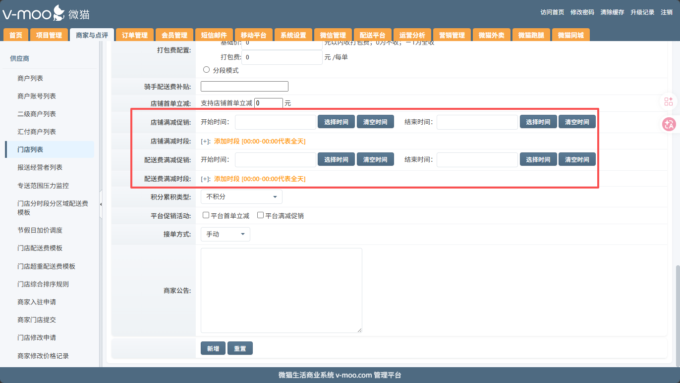 | 平台满减促销 | 门店参与平台统一的满减活动 |