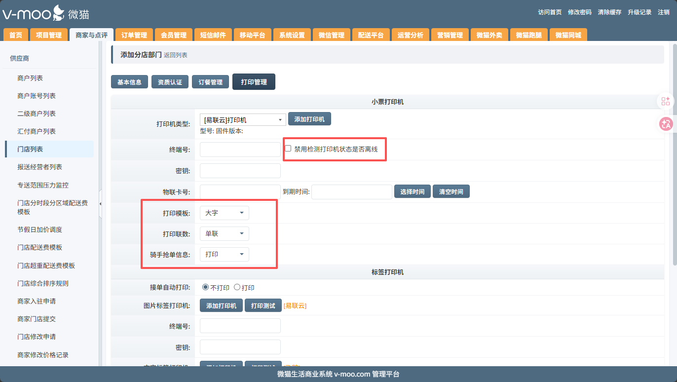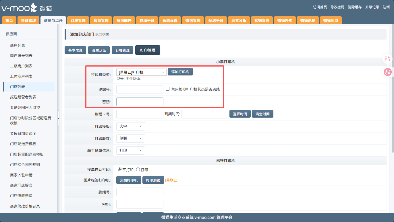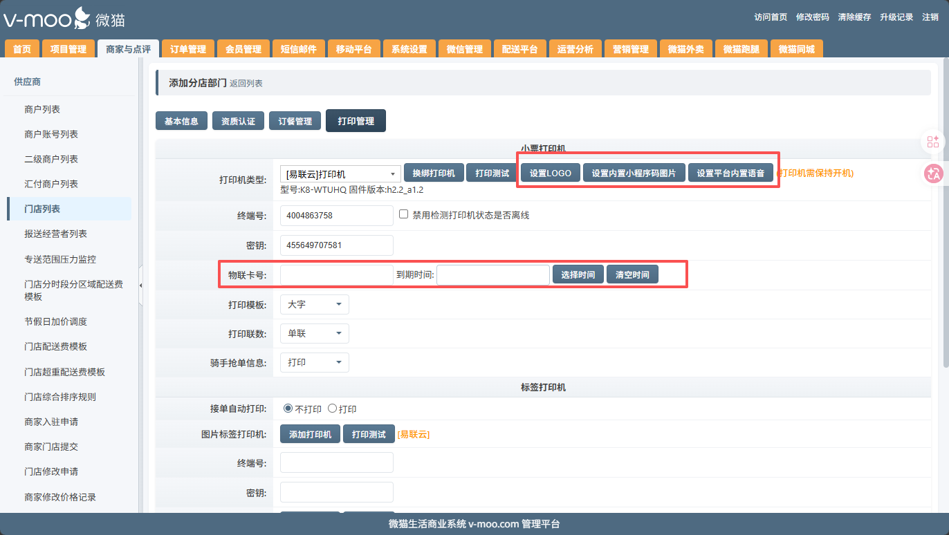 | 打印管理 | 打印机绑定、打印模板、物联卡 | ⭐⭐ 建议配 |